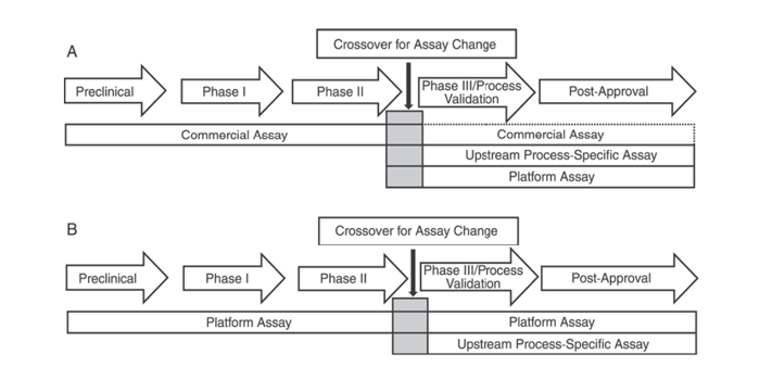 USP <1132> では、プラットフォーム メソッドがない場合、市販の試薬を前臨床、フェーズ I、フェーズ II 臨床試験で使用できると記載されています。フェーズ III 臨床試験/プロセス検証および市販後製品では、市販の一般的な HCP 検出試薬の抗体カバレッジが不十分であるなどの制限があるため、細胞の種類やプロセス特異性などの要因を考慮し、上流プロセス開発にはプラットフォーム メソッドまたは製品/プロセス固有のメソッドを使用する必要があります。
